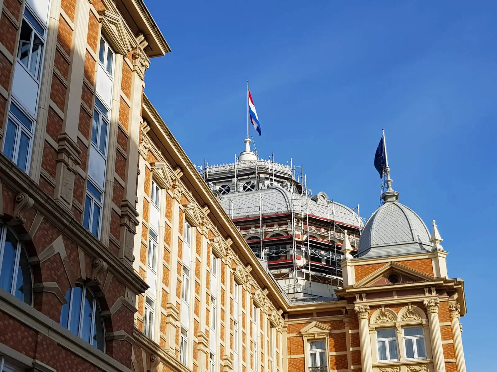 Grand Hotel Amrath Kurhaus staat al enige tijd volledig in de steigers; het monumentale gebouw ondergaat een complete gevelrenovatie.