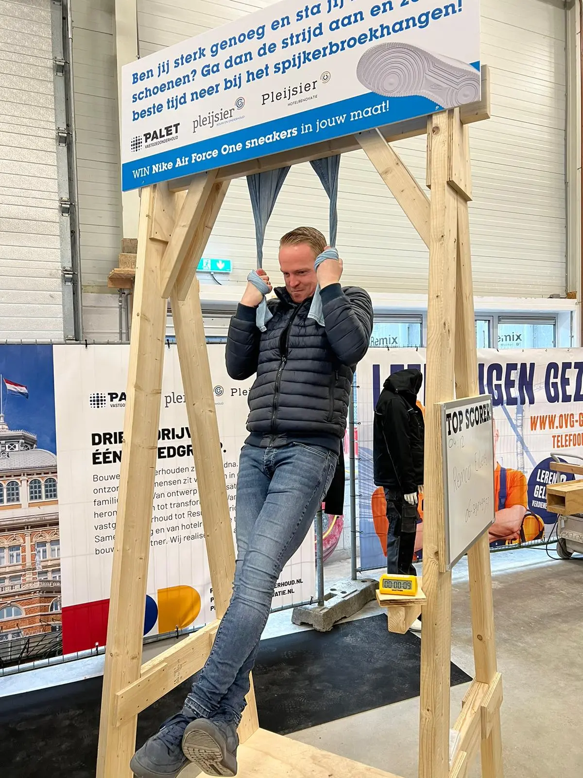 Onderdeel van onze stand bij het OVG was het ‘Spijkerbroekhangen’. Degene met de beste tijd kon een paar Nike Air Force One sneakers winnen en dat zorgde voor een echte competitie, vooral onder de jonge bezoekers.