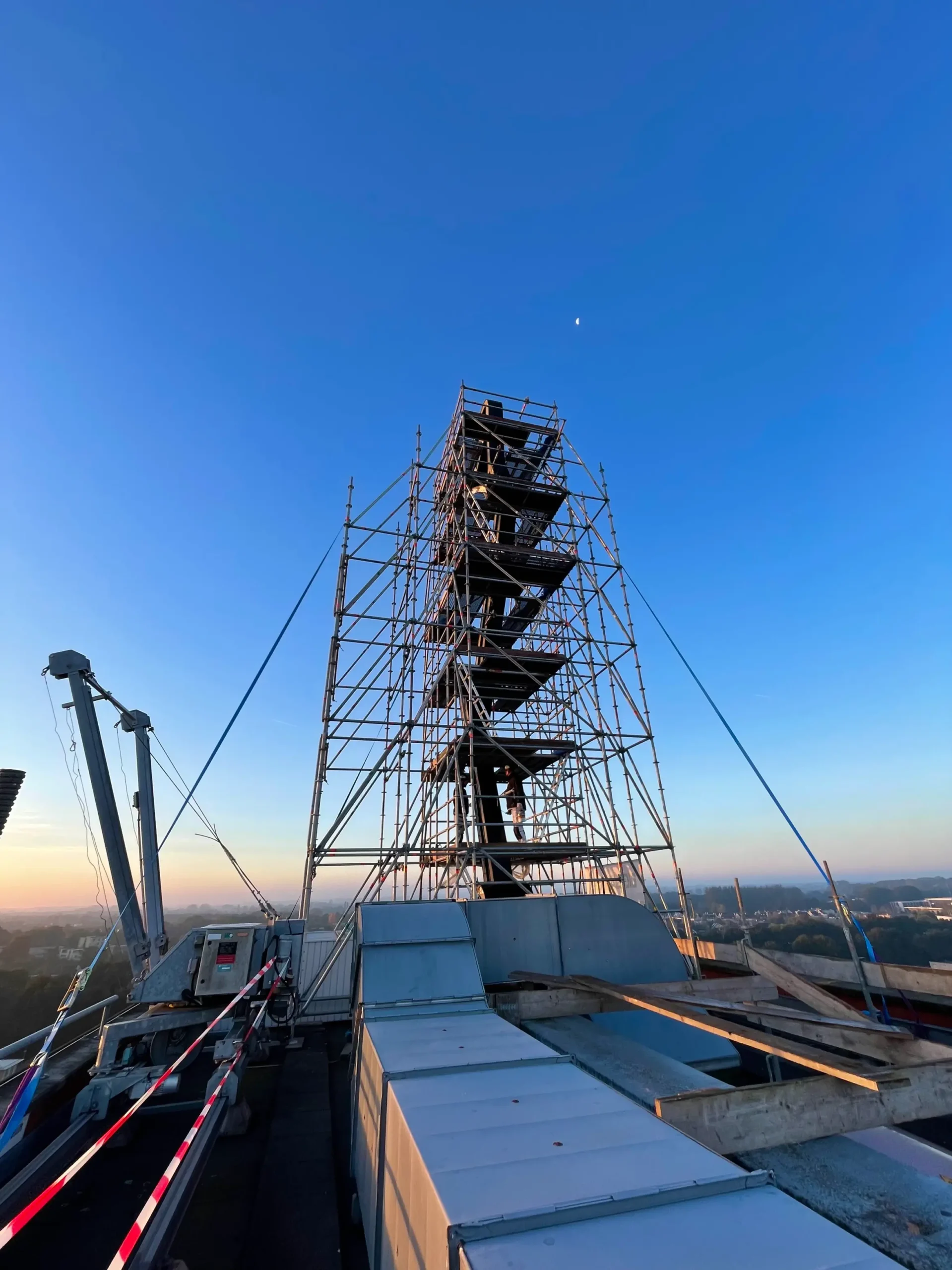 In opdracht van Gemeente Zwolle bevindt Palet Vastgoedonderhoud zich op grote hoogte.