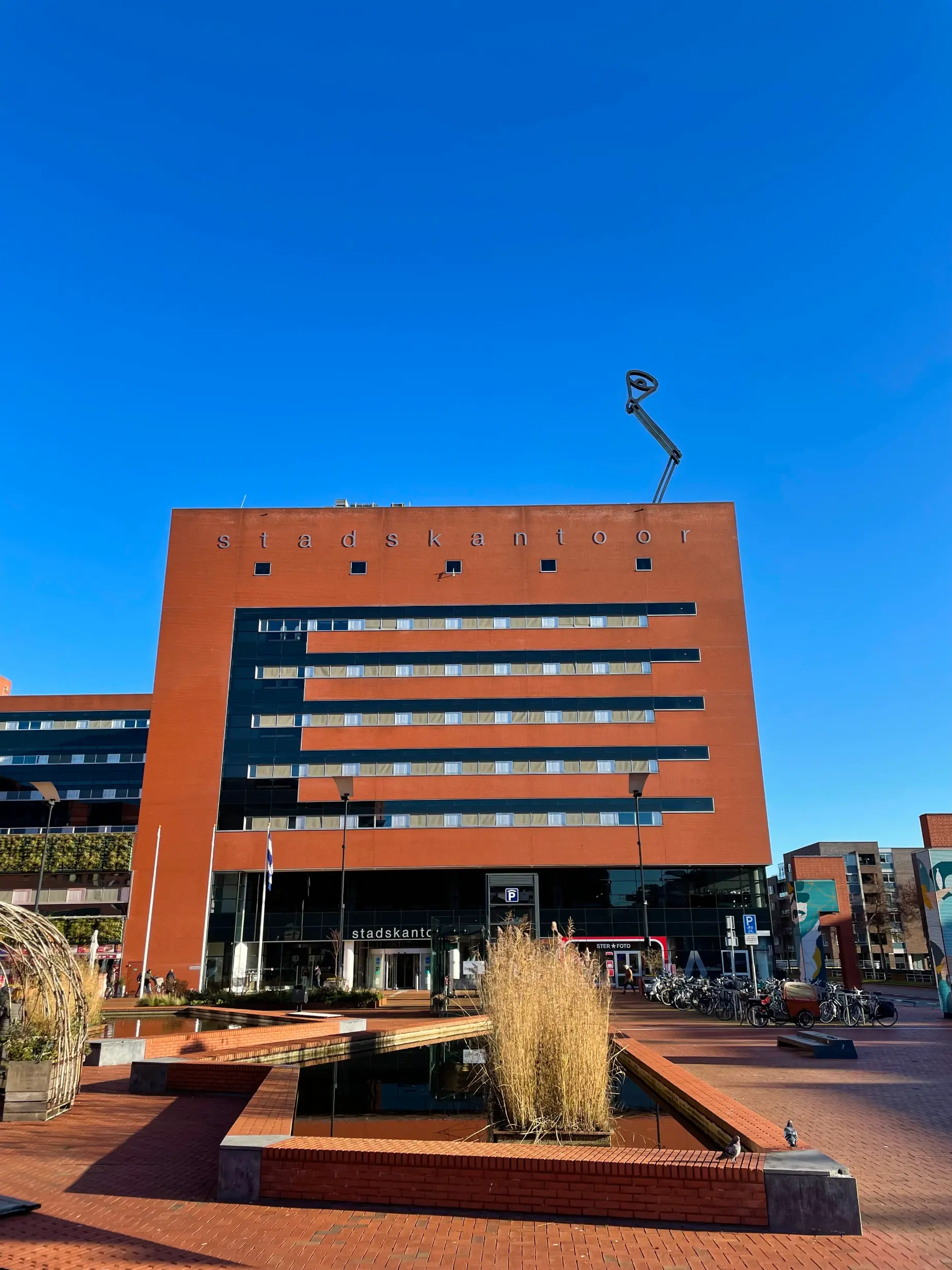 En wel op het dak van het Stadskantoor van de Overijsselse hoofdstad! Hier staat een veertien meter hoog kunstwerk van de hand van Jeroen Henneman, genaamd de ‘Bureaulamp’. Door weer en wind is het kunstwerk beschadigd en hierdoor brandt de lamp helaas niet meer. Aan Palet Vastgoedonderhoud de taak om de Bureaulamp nieuw leven (en licht) in te blazen, zodat deze in de winterperiode weer kan schijnen in het donker.