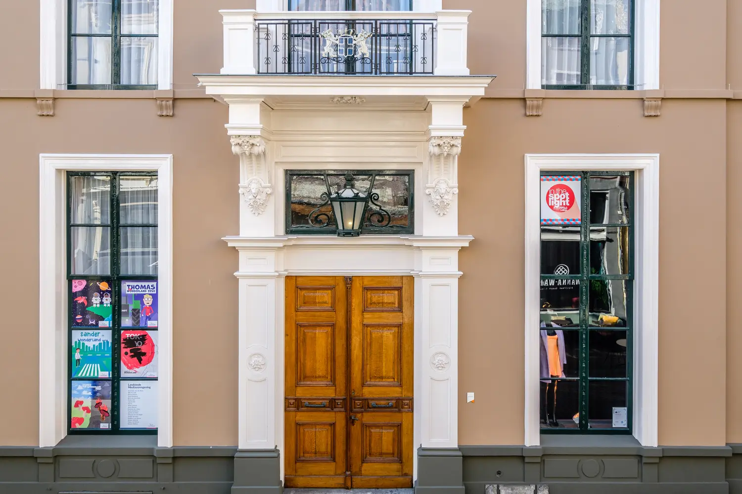 Een bijzonder onderdeel was de grote gelakte voordeur. “We hebben die eerst waar nodig bijgekleurd. Ook daar was kleurenexpert Bert Jonker bij betrokken. Nadat de kleur was goedgekeurd, hebben we de deur vervolgens vier keer in de blanke lak gezet. Het was onze eigen keuze om het vier keer te doen. Het is wel het aanzien van de Gemeente Zwolle en we wilden er als uitvoerend team een plaatje van maken”, zegt Visscher trots.